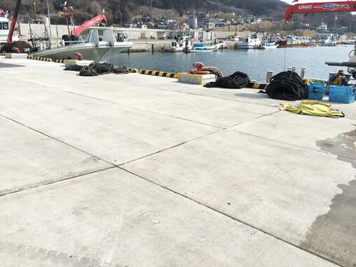 震災で沈下した地盤が少しずつ隆起しています。岸壁高さが変…