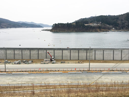 防潮堤が立ち上がっていない所から撮影。